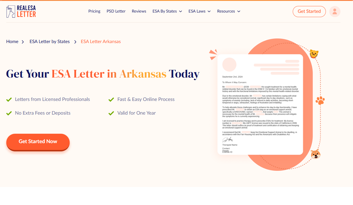 For Arkansas residents in 2026, securing a valid ESA letter is essential for housing, travel, and emotional well-being. RealESALetter.com provides a fast, professional, and legally compliant solution that ensures your companion animal is officially recognized and protected.